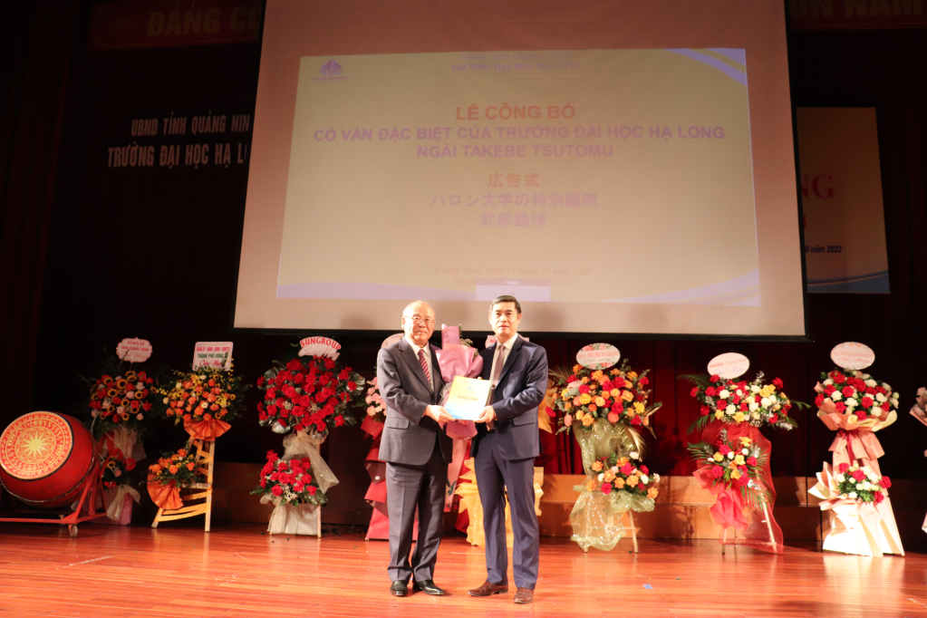 Tại Lễ khai giảng, Trường Đại học Hạ Long tổ chức công bố quyết định mời ông Takebe Tsutomu, Cố vấn đặc biệt Liên minh Nghị sĩ Hữu nghị Nhật - Việt, làm cố vấn đặc biệt Trường Đại học Hạ Long, thời gian làm việc từ tháng 10/2022 đến tháng 10/2025.