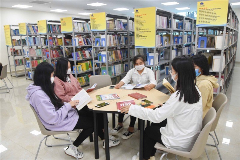 Sinh viên Trường Đại học Hạ Long đọc sách tại Thư viện nhà trường.