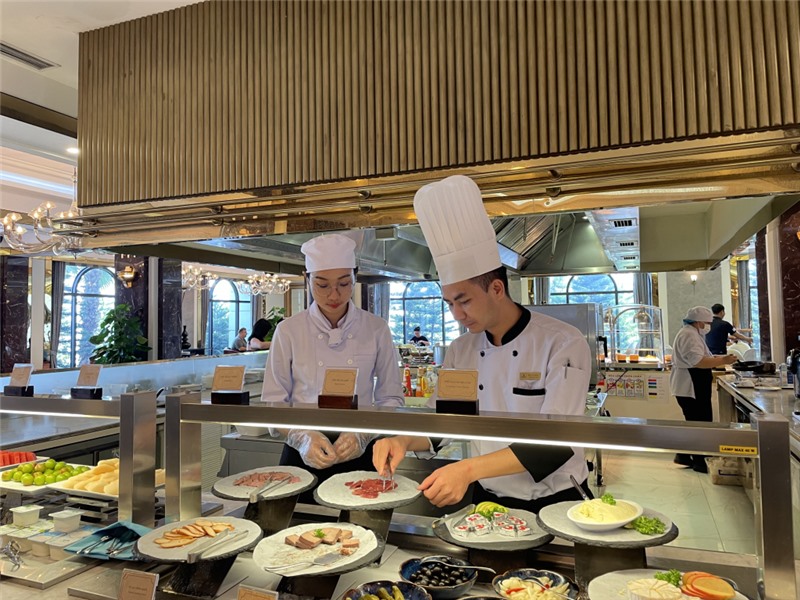 Sinh viên Trường Đại học Hạ Long (bên trái) vừa tốt nghiệp năm 2023 đã được Khu nghỉ dưỡng Vinpearl Resort & Spa Hạ Long nhận vào làm việc.