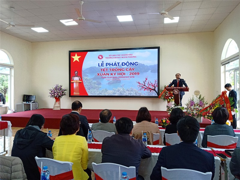 Tại buổi lễ phát động hưởng ứng Tết trồng cây đầu xuân Kỷ Hợi 2019, đồng chí Trần Văn Lâm - Tỉnh ủy viên, Bí thư Thành ủy, Chủ tịch HĐND TP Uông Bí đã nhấn mạnh lợi ích cũng như tầm quan trọng của việc trồng cây và bảo vệ môi trường. Đồng chí đề nghị mỗi cán bộ, viên chức và sinh viên Trường Đại học Ngoại thương cơ sở Quảng Ninh tùy theo điều kiện cụ thể hãy trồng và chăm sóc 1 cây xanh, làm cho nhà trường luôn "Xanh - Sạch - Đẹp", góp phần xây dựng thành phố Uông Bí năng động, hiện đại và thân thiện với môi trường.