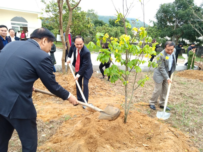 Ngay sau đó, các đại biểu, giảng viên, sinh viên nhà trường tiến hành trồng 10 cây sấu và 20 cây hoa mai vàng Yên Tử do TP Uông Bí tặng.