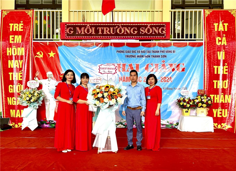 Hòa chung không khí vui tươi của ngày khai giảng năm học mới, Ngày hội toàn dân đưa trẻ đến trường, sáng ngày 05/9, Trường Mầm non Thanh Sơn đã long trọng tổ chức lễ khai giảng năm học 2023-2024. Đồng chí Nguyễn Đức Hòa - Phó Chủ tịch UBND thành phố dự chúc mừng. Dự lễ khai giảng còn có đại diện lãnh đạo phường Thanh Sơn, các đại biểu đại diện phụ huynh nhà trường.