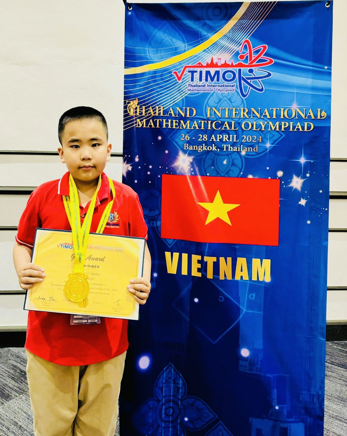 4 Huy chương vàng thuộc về các em: Nguyễn Trí Hiếu, lớp SH 5.2; Đỗ Đức Kiệt, lớp SH 4.2; Nguyễn Viết Trọng, lớp SH 4.3 và Nguyễn Hưng, lớp SH 3.1.