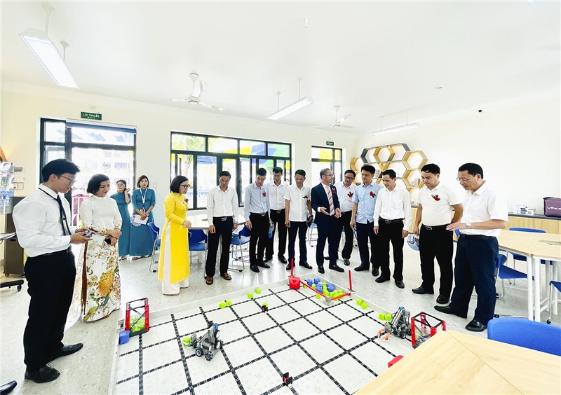 Đại biểu tham quan toà nhà Khối THCS Trường TH&THCS Quốc tế Stephen Hawking.