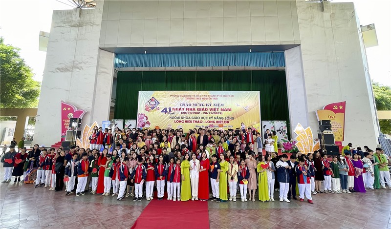 Sáng ngày 19/11, Trường THCS Nguyễn Trãi long trọng tổ chức Chương trình kỷ niệm 41 năm Ngày Nhà giáo Việt Nam (20/11/1982 - 20/11/2023); ngoại khóa giáo dục kỹ năng sống “Lòng hiếu thảo - Lòng biết ơn”.