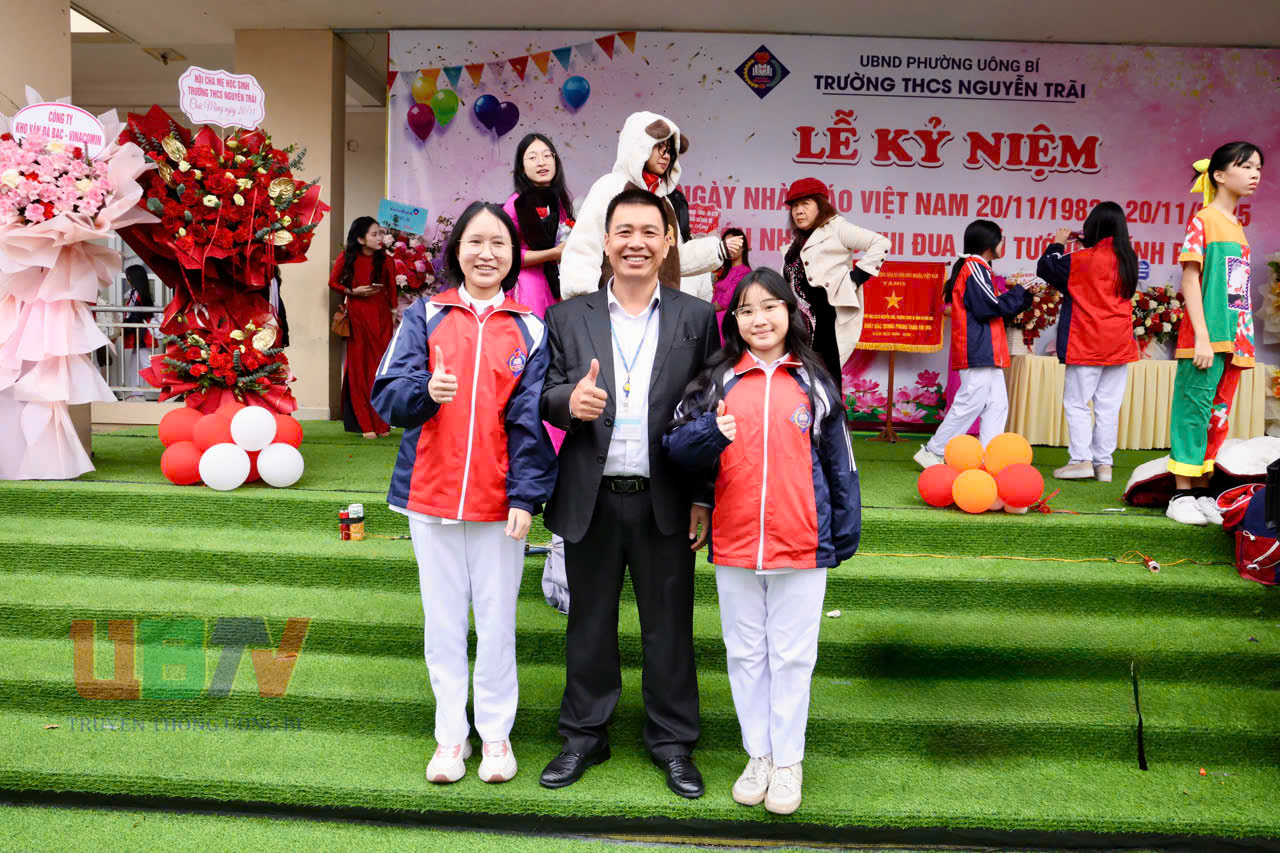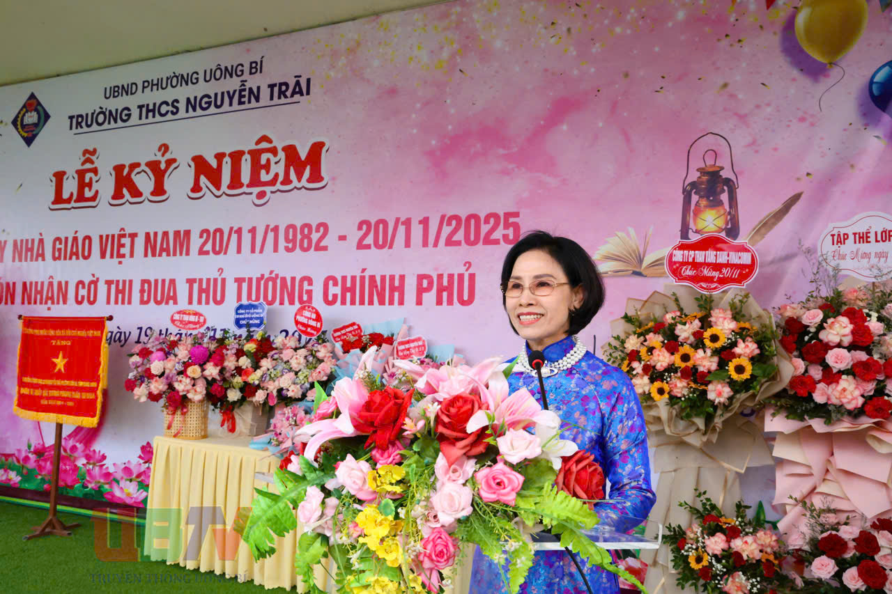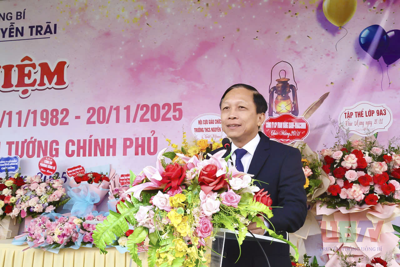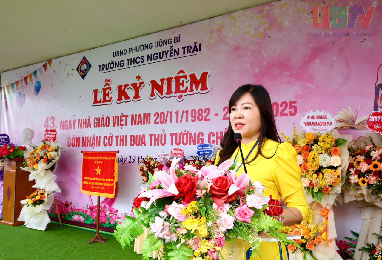 Phát biểu tại buổi lễ, đồng chí Nguyễn Chiến Thắng, Bí thư Đảng uỷ, Chủ tịch HĐND gửi lời chúc mừng nhân Ngày Nhà giáo Việt Nam và đánh giá cao những đóng góp của Trường THCS Nguyễn Trãi đối với sự nghiệp giáo dục địa phương. Đồng chí khẳng định: Trường THCS Nguyễn Trãi luôn là điểm sáng của ngành giáo dục địa phương. Thành tích hôm nay là minh chứng cho tinh thần trách nhiệm, tấm lòng yêu nghề và sự nỗ lực không ngừng của đội ngũ thầy cô.