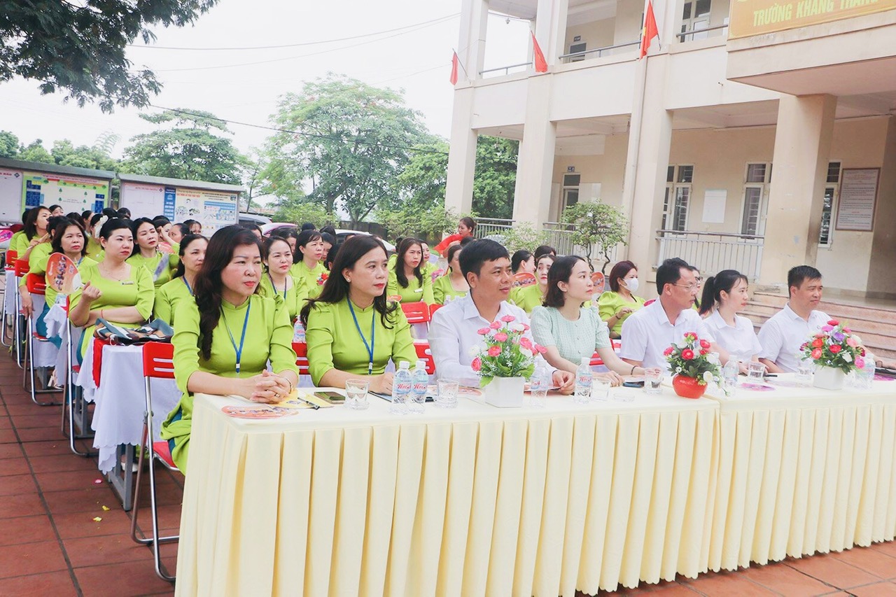 Giáo viên và học sinh nhà trường dự buổi lễ.