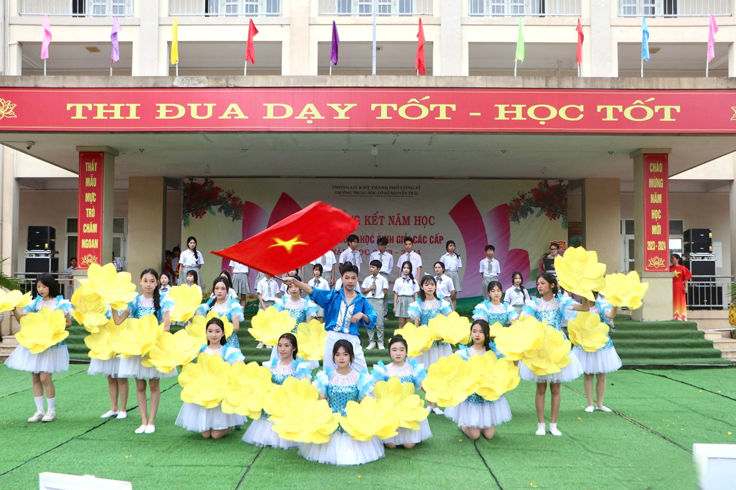 Tại buổi tổng kết, nhà trường đã tuyên dương, khen thưởng cho các em học sinh có thành tích xuất sắc trong năm học 2023-2024; khen thưởng các tập thể lớp xuất sắc và tổ chức Lễ ra trường cho học sinh khối lớp 9.