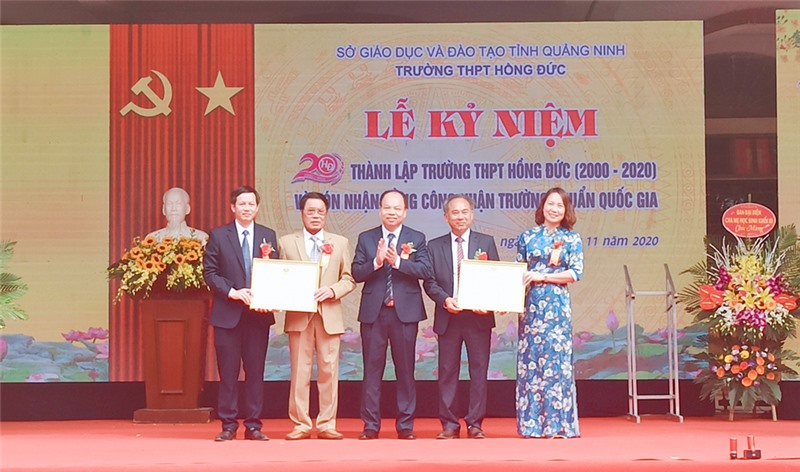 Nhân dịp này, UBND tỉnh Quảng Ninh đã trao Bằng công nhận trường đạt chuẩn Quốc gia mức độ 1, trao danh hiệu “Tập thể lao động xuất sắc” cho Trường THPT Hồng Đức. Tập thể nhà trường cùng 2 cá nhân vinh dự được tặng bằng khen của Chủ tịch UBND tỉnh. 6 cá nhân có thành tích xuất sắc trong quá trình xây dựng và phát triển nhà trường vinh dự được Bộ GD&ĐT khen thưởng.