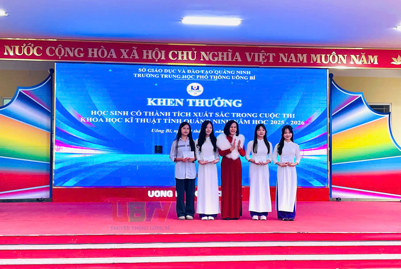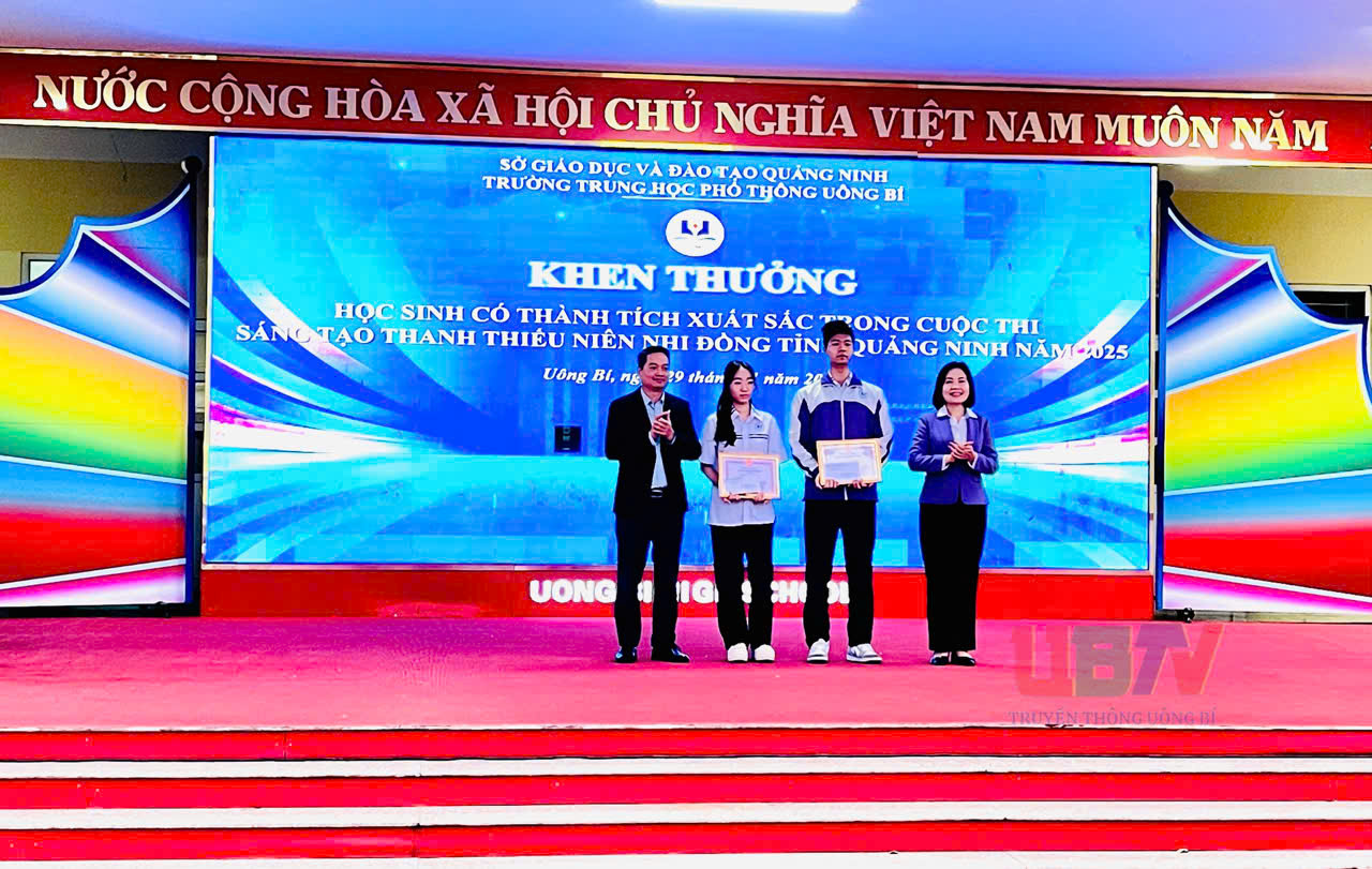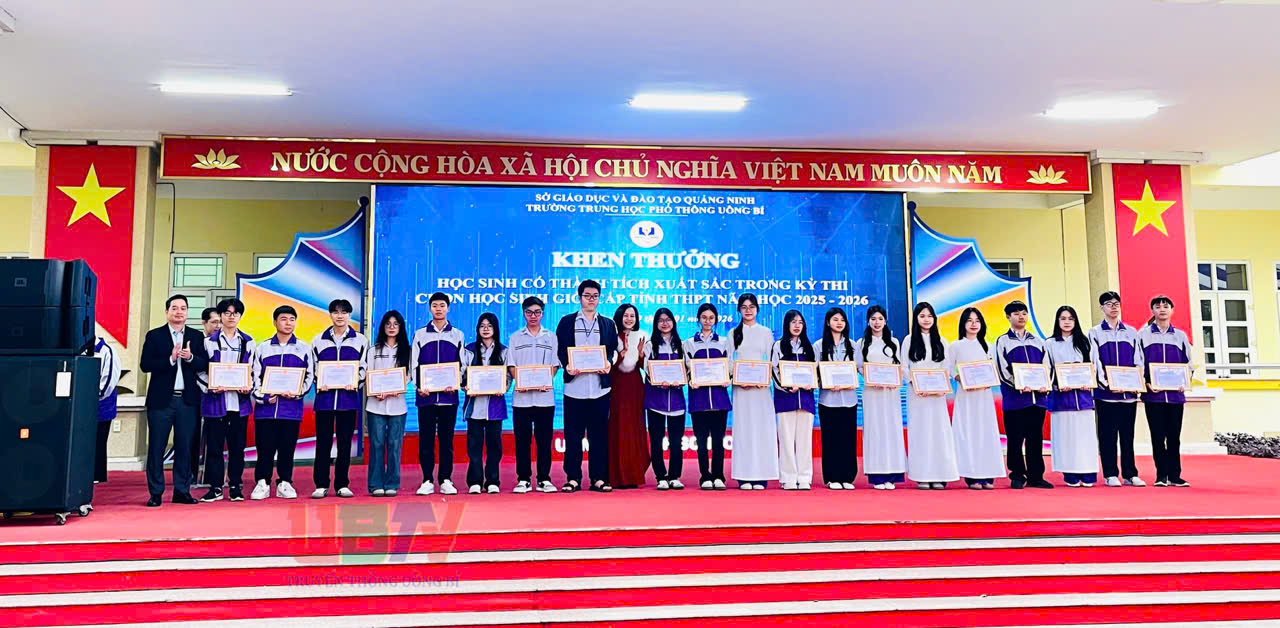 Công tác bồi dưỡng học sinh giỏi, nghiên cứu khoa học và sáng tạo trẻ tiếp tục là điểm sáng nổi bật. Tại Kỳ thi chọn học sinh giỏi THPT cấp tỉnh năm học 2025-2026, Trường THPT Uông Bí có 131 giải ở hầu hết các môn văn hóa và khoa học tự nhiên, khoa học xã hội, là đơn vị dẫn đầu toàn tỉnh khối trường THPT không chuyên. Trong đó có 8 học sinh đạt giải Nhất, 35 học sinh đạt giải Nhì. Bên cạnh đó, học sinh nhà trường còn tích cực tham gia và đạt giải cao tại Cuộc thi Sáng tạo thanh thiếu niên nhi đồng tỉnh Quảng Ninh và Cuộc thi nghiên cứu khoa học kỹ thuật cấp tỉnh với các đề tài mang tính ứng dụng thực tiễn, thể hiện tư duy sáng tạo, khả năng vận dụng kiến thức liên môn và phương pháp nghiên cứu khoa học bài bản. Kết quả này cho thấy hiệu quả rõ nét của việc tổ chức hoạt động nghiên cứu khoa học trong nhà trường, gắn học tập lý thuyết với thực tiễn. Đội thi của Trường THPT Uông Bí cũng đã tham gia và giành giải Nhất tại Cuộc thi tranh biện ISPEAK cấp tỉnh. Học sinh nhà trường cũng đã tự tin tham gia và giành nhiều giải cao tại các sân chơi trí tuệ mang tầm quốc gia, tiệm cận các tiêu chuẩn quốc tế như Kỳ thi Olympic các môn Ngoại ngữ bậc THPT; Kỳ thi Thách thức tư duy thuật toán Bebras.