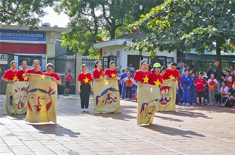 Ngay sau lễ khai mạc, các em học sinh nhà trường cùng tham gia phần thi đồng diễn các bài thể dục, đồng diễn võ thuật.. và các trò chơi bổ ích phát triển thể lực như: nhảy hươu, nhảy dây, kéo co...