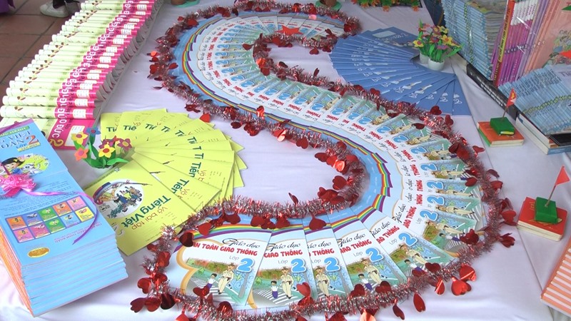 Với sự khéo léo, sáng tạo, hàng nghìn đầu sách, truyện, báo đã được cô, trò nhà trường sắp xếp, trang trí thành những mô hình đẹp mắt, thân thuộc, gần gũi với tuổi thơ, thể hiện nhiều chủ đề khác nhau như: Sách - Niềm vui trí tuệ, Sách - Kho tàng tri thức, con tàu trí tuệ, Biển đảo quê hương…