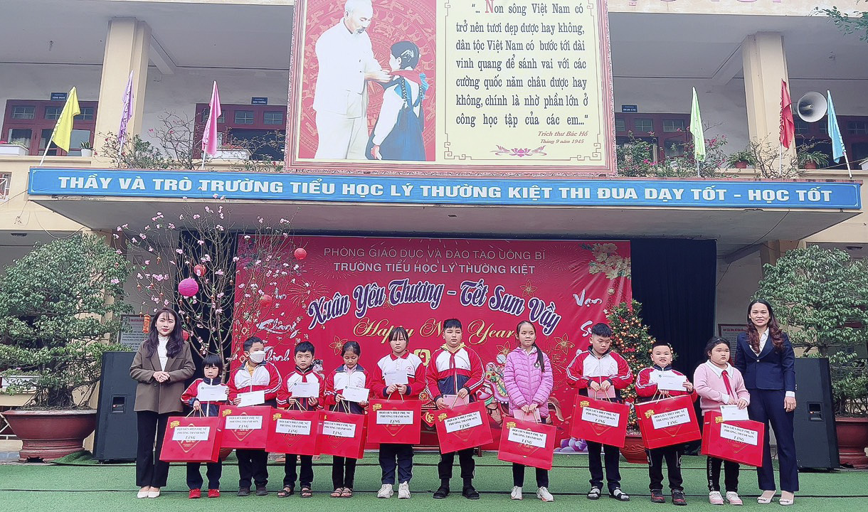 Nhân dịp Tết Nguyên đán Quý Mão 2023, để động viên để các em có hoàn cảnh khó khăn, giúp các em vơi đi phần nào khó khăn trong cuộc sống, Trường Tiểu học Lý Thường Kiệt đã trao 24 suất quà Tết tặng cho các em, mỗi suất trị giá 1,1 triệu. Cũng nhân dịp này, Hội LHPN phường Thanh Sơn đã trao 10 suất quà cho học sinh có hoàn cảnh khó khăn của trường, mỗi suất trị giá 500.000 đồng.