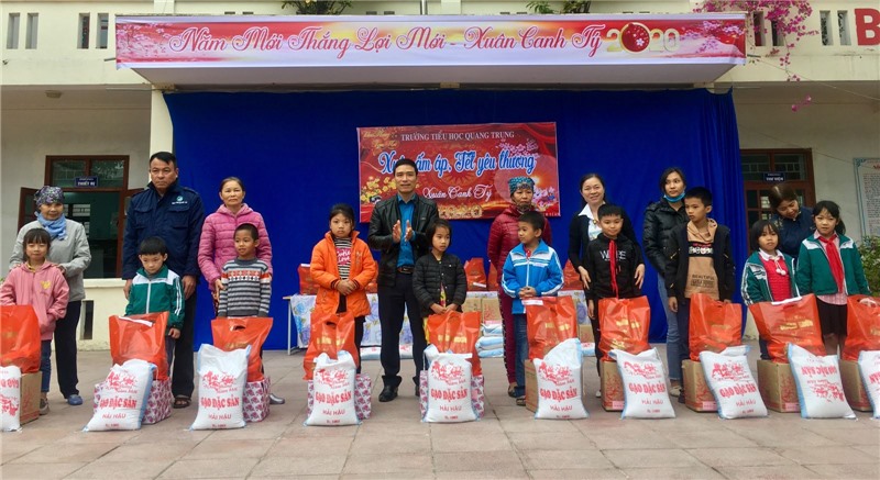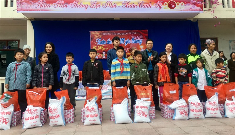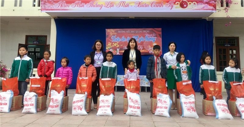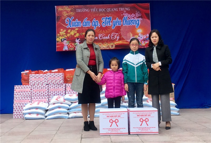 Với tinh thần tương thân tương ái, Trường Tiểu học Quang Trung đã phát động ủng hộ các em học sinh nghèo đón tết trong học sinh, phụ huynh và giáo viên nhà trường; đồng thời kêu gọi sự chung tay hỗ trợ của các doanh nghiệp trên địa bàn. Từ nguồn kinh phí ủng hộ, trường tặng 30 suất quà Tết, trị giá gần 900 nghìn đồng/suất cho 30 học sinh nghèo. Mỗi suất quà gồm áo ấm, sách vở và thực phẩm Tết. Những món quà này là sự động viên, sẻ chia kịp thời, giúp các em đón Tết ấm áp cùng gia đình, người thân. Cùng với đó, Hội Liên hiệp phụ nữ thành phố tặng 2 suất quà Tết cho 2 học sinh mồ côi, mắc bệnh hiểm nghèo; chi đoàn Trường mầm non Hoa Mai Vàng tặng 1 suất quà đỡ đầu trị giá 1,2 triệu đồng cho em Nguyễn Thị Ngọc An, lớp 5E; Liên đoàn lao động thành phố, công đoàn nhà trường cũng trao tặng 4 triệu đồng cho một giáo viên có hoàn cảnh khó khăn.