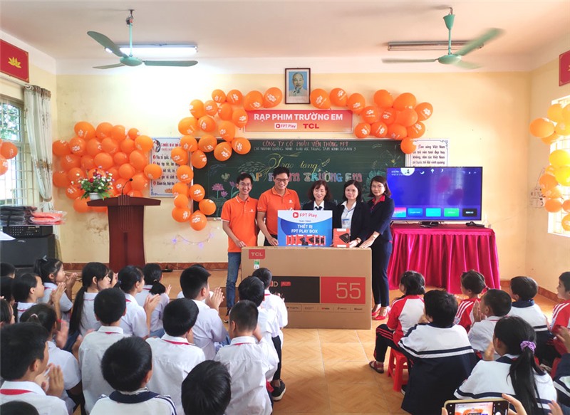 Ngày 20-10, khu vực trung tâm kinh doanh 3, chi nhánh Quảng Ninh, Công ty Cổ phần viễn thông FPT đã trao tặng Trường Tiểu học & THCS Điền Công, phường Trưng Vương bộ thiết bị Rạp phim trường em.