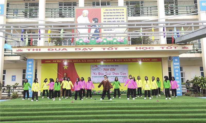 Ngày 20/3, Trường Tiểu học Trưng Vương tưng bừng tổ chức Ngày hội thiếu nhi vui khỏe - Tiến bước lên Đoàn năm học 2022-2023 với nhiều chương trình, hoạt động có ý nghĩa như: thi nhảy đồng diễn giữa các khối lớp với chủ đề Vũ điệu tuổi thần tiên; chơi trò chơi vận động; trò chơi dân gian… Dự động viên chương trình có đồng chí Lê Hoàng Long, Phó Bí thư Thành Đoàn Uông Bí.