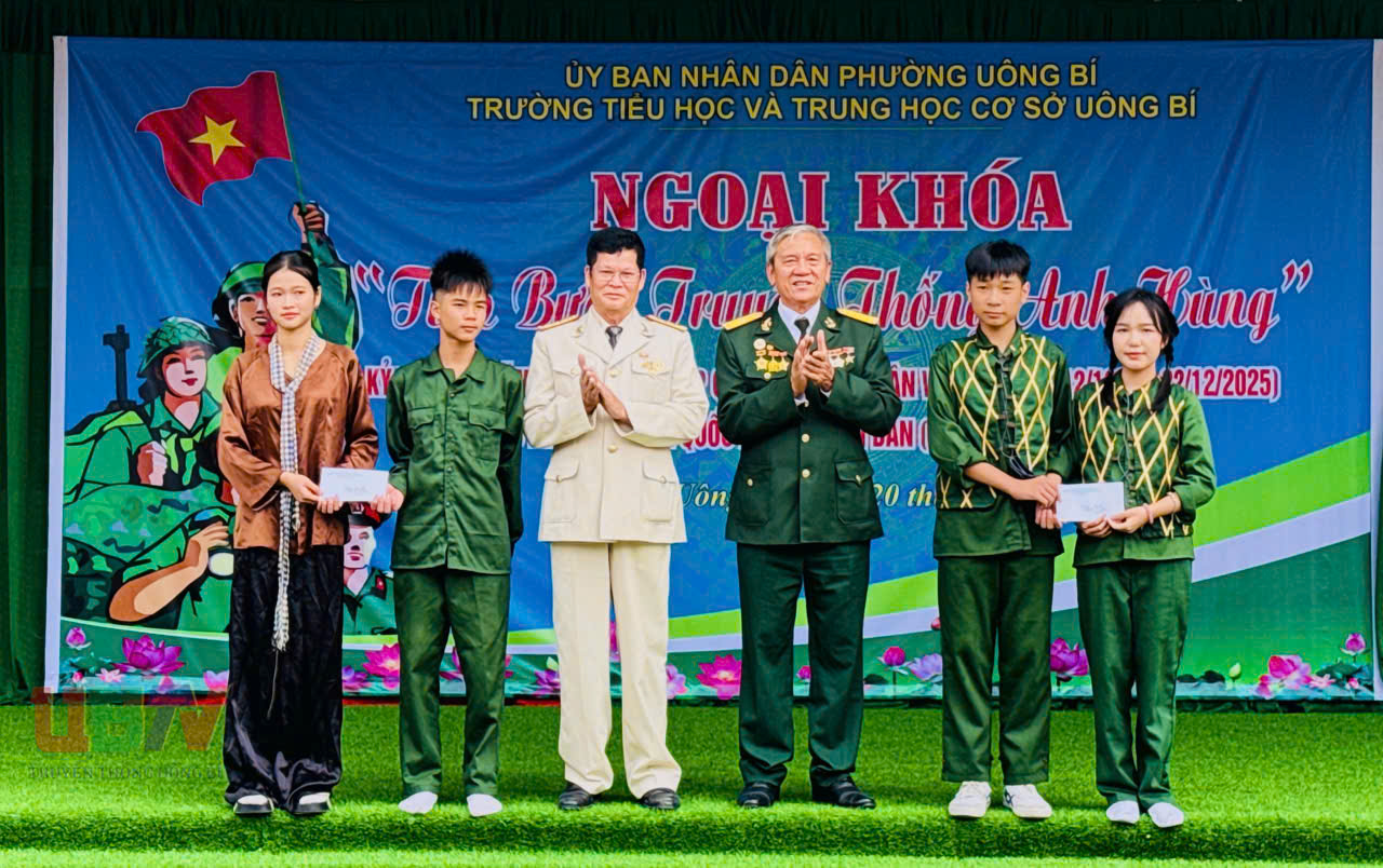 Ngoại khóa “Tiếp bước truyền thống anh hùng” Sáng ngày 20/12, Trường Tiểu học và THCS Uông Bí tổ chức chương trình ngoại khóa với chủ đề “Tiếp bước truyền thống anh hùng”, chào mừng 81 năm Ngày thành lập Quân đội nhân dân Việt Nam (22/12/1944–22/12/2025) và 36 năm Ngày hội Quốc phòng toàn dân (22/12/1989–22/12/2025).