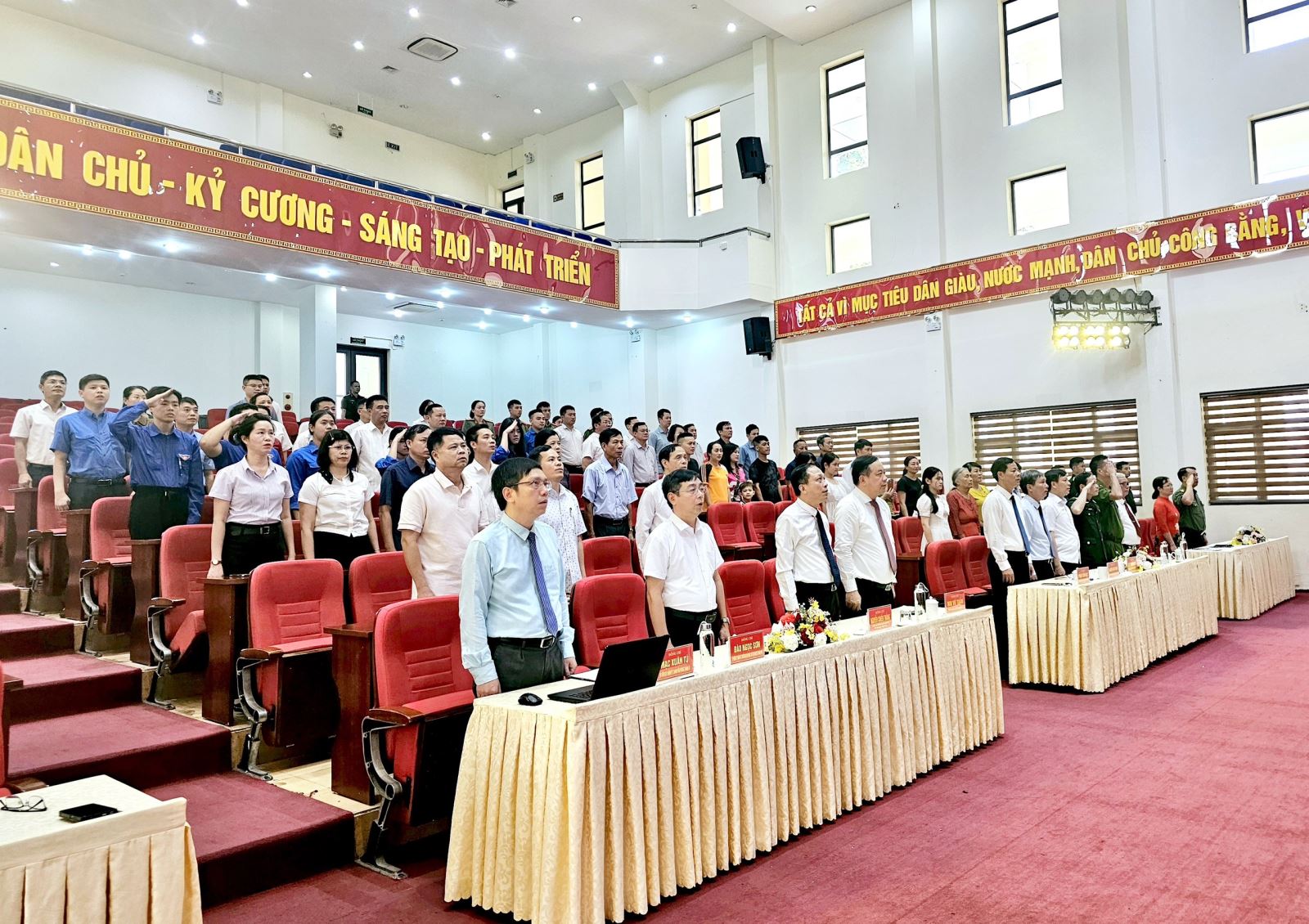 Các đại biểu thực hiện nghi lễ chào cờ tại buổi lễ.