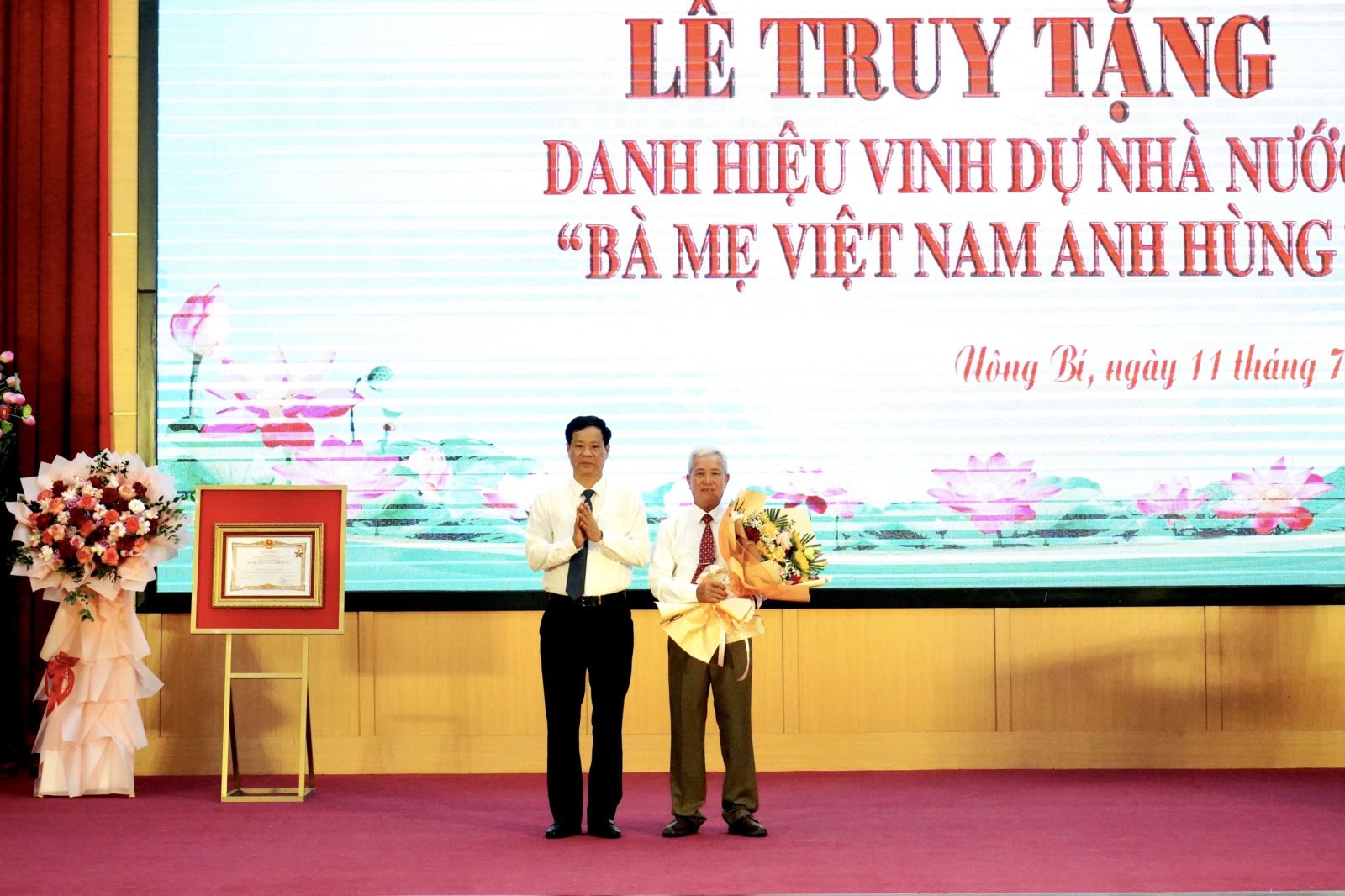 Thừa ủy quyền của Chủ tịch nước, các đồng chí lãnh đạo tỉnh và thành phố đã trao Bằng danh hiệu vinh dự Nhà nước “Bà Mẹ Việt Nam Anh hùng” cho thân nhân Mẹ Đào Thị Ích.