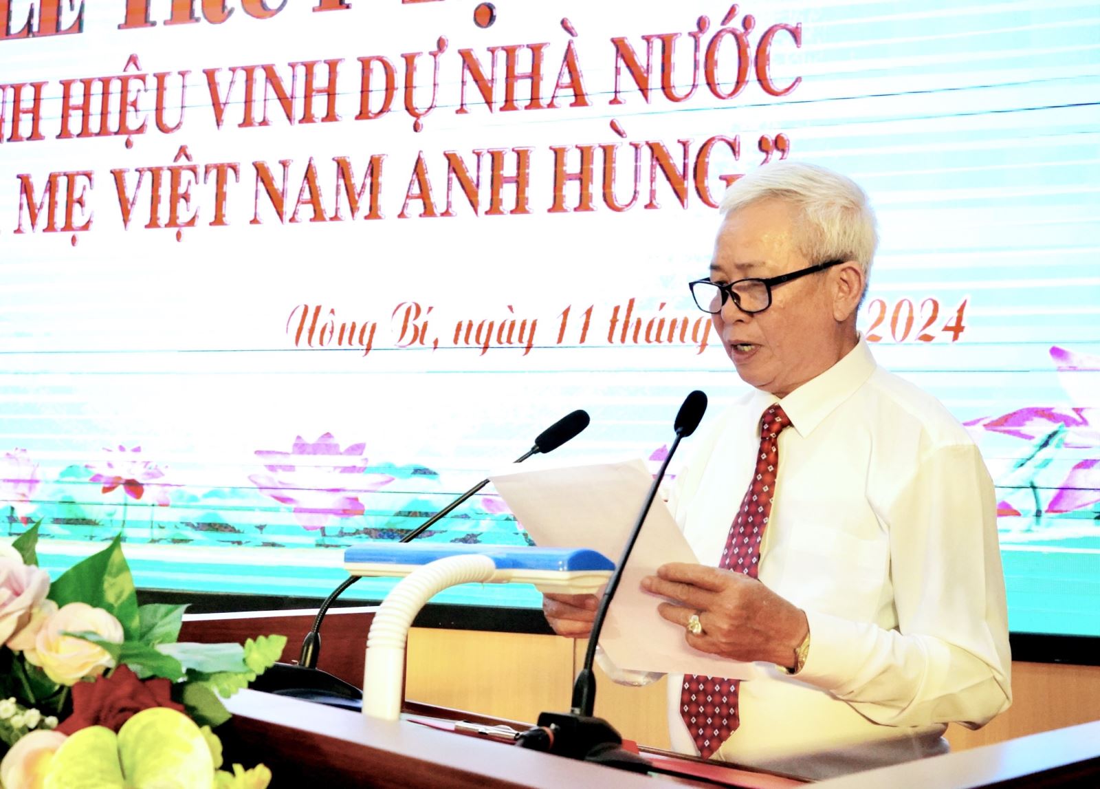 Ông Nguyễn Duy Phúc, thân nhân Mẹ VNAH Đào Thị Ích phát biểu tại buổi lễ.