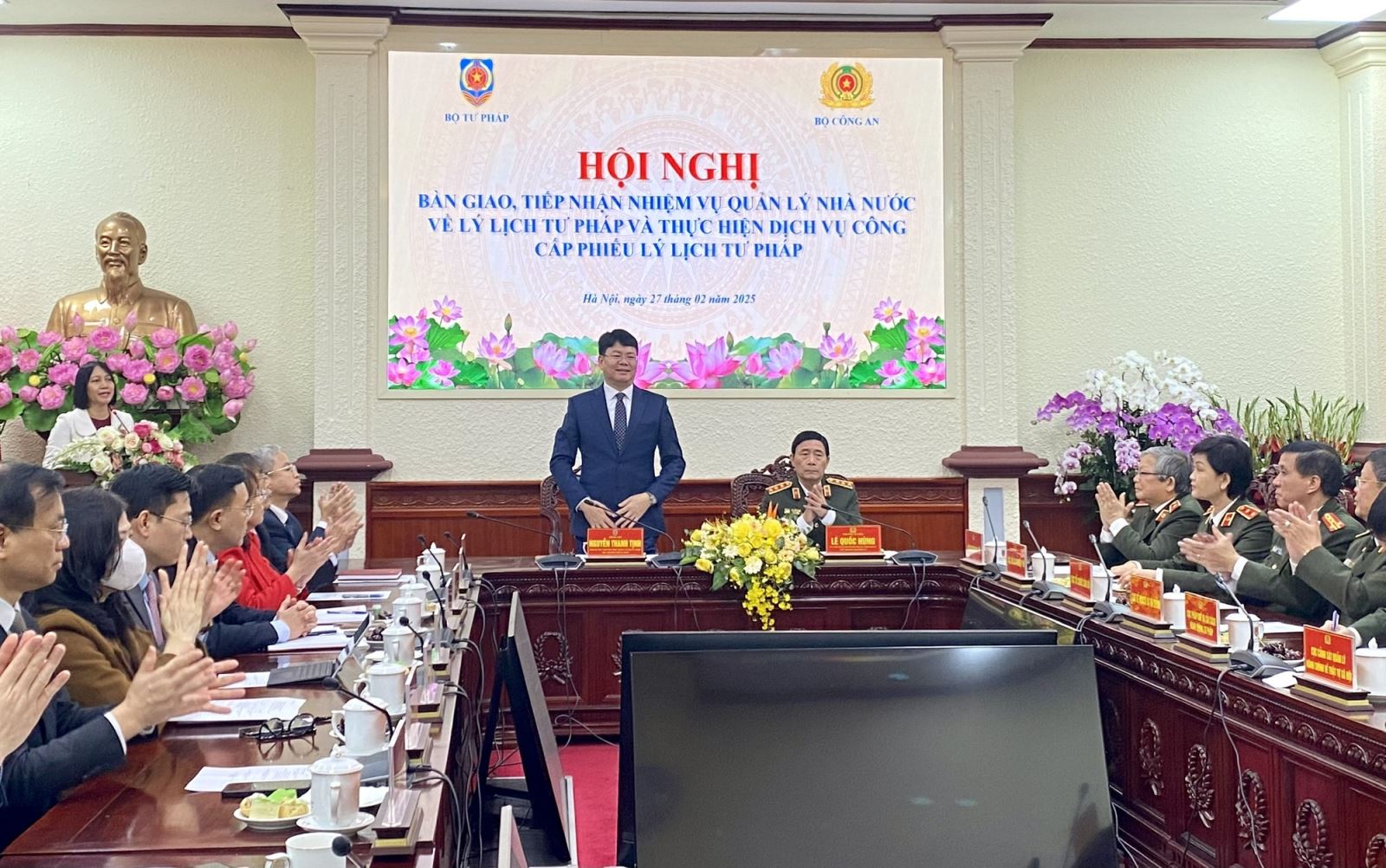 Sáng 27/2, Bộ Tư pháp tổ chức lễ bàn giao nhiệm vụ quản lý Nhà nước về lý lịch tư pháp và thực hiện dịch vụ công cấp Phiếu lý lịch tư pháp từ Bộ Tư pháp sang Bộ Công an.