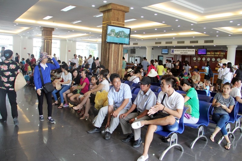 Du khách đợi làm thủ tục tại khu vực nhà chờ Cảng tàu Tuần Châu.