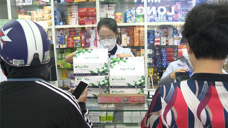 Người dân chủ động mua kit test nhanh Covid-19 tại các hiệu thuốc.