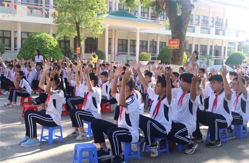 Học sinh Trường THCS Ka Long, TP Móng Cái tham gia hào hứng tại buổi khai mạc Tuần lễ hưởng ứng học tập suốt đời của thành phố. Ảnh: Thu Hằng (CTV)