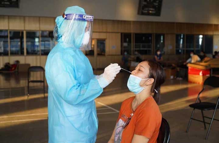 Lấy mẫu xét nghiệm sàng lọc nhiễm SARS-CoV-2 tại TP Uông Bí.
