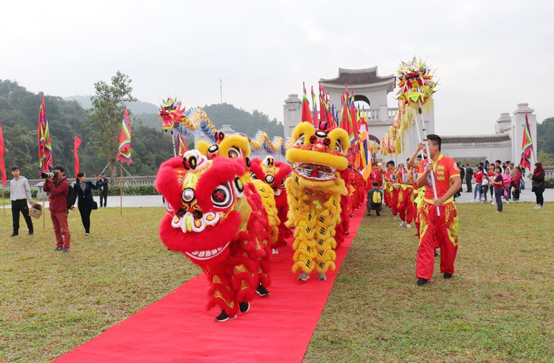 Màn múa rồng lân sôi động tại lễ khai hội.