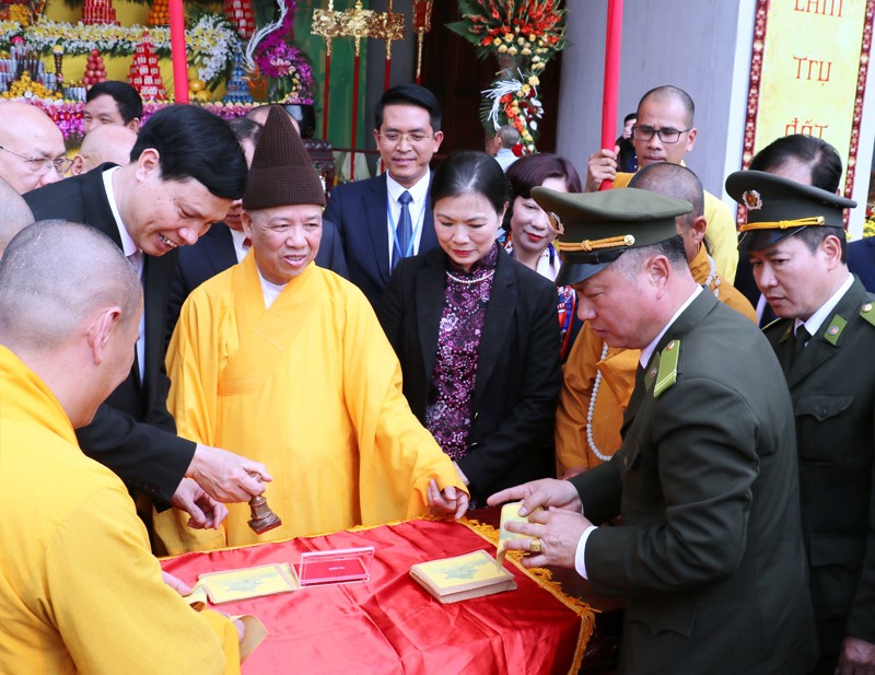 Đến dự Lễ khai hội, về phía Trung ương có đồng chí Trương Thị Ngọc Ánh, Phó Chủ tịch Uỷ ban Trung ương MTTQ Việt Nam. Về phía tỉnh Quảng Ninh có các đồng chí: Nguyễn Đức Long, Phó Bí thư Tỉnh ủy, Chủ tịch UBND tỉnh; Vũ Thị Thu Thủy, Phó Chủ tịch UBND tỉnh. Về phía thành phố Uông Bí có các đồng chí: Trần Văn Lâm, Tỉnh ủy viên, Bí thư Thành ủy, Chủ tịch HĐND thành phố; Nguyễn Mạnh Hà, Phó Bí thư Thành ủy, Chủ tịch UBND thành phố. Đại biểu Giáo hội Phật giáo Việt Nam có hòa thượng Thích Thanh Nhiễu, Phó Chủ tịch thường trực Hội đồng Trị sự Giáo hội Phật giáo Việt Nam; Thượng tọa Thích Thanh Quyết, Phó Chủ tịch Hội đồng Trị Sự Trung ương Giáo hội Phật giáo Việt Nam, Trưởng Ban Trị sự Giáo hội Phật giáo Việt Nam tỉnh Quảng Ninh. Về dự khai hội còn có đông đảo các chư tôn đức, tăng ni, phật tử và nhân dân.
