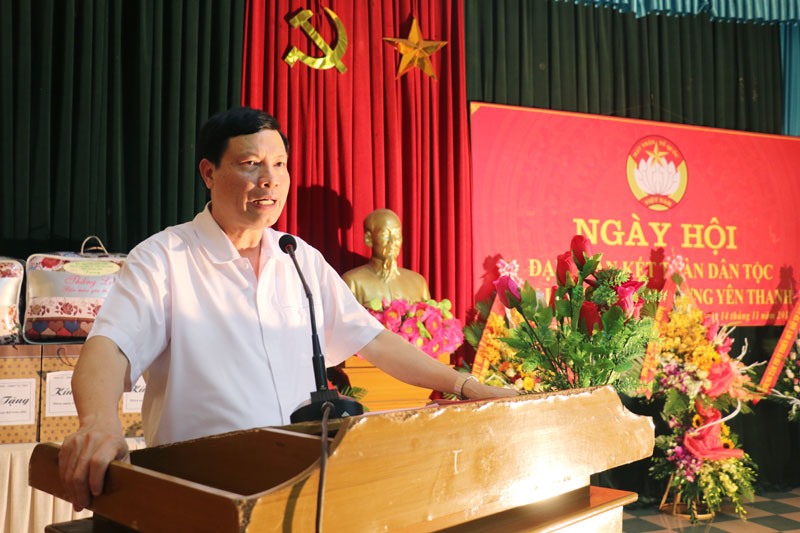 Đồng chí Nguyễn Đức Long, Phó Bí thư Tỉnh ủy, Chủ tịch UBND tỉnh phát biểu tại Ngày hội Đại đoàn kết toàn dân tộc khu Lạc Thanh.