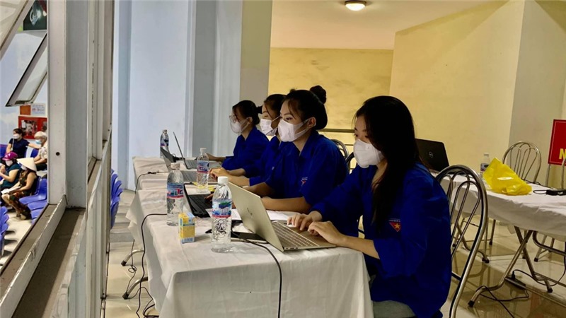 Đoàn viên, thanh niên TP Cẩm Phả tham gia nhập dữ liệu tiêm vắc-xin phòng Covid-19.