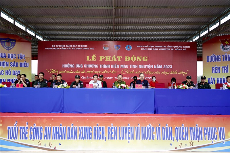 Với chủ đề "Mỗi giọt máu cho đi, một cuộc đời ở lại - CSCĐ sẵn sàng hiến dâng", sáng ngày 19/3, Trung đoàn Cảnh sát cơ động (CSCĐ) Đông Bắc đã phối hợp với Ban Chỉ đạo hiến máu tình nguyện thành phố Uông Bí tổ chức Chương trình hiến máu tình nguyện lần thứ 1 năm 2023.
