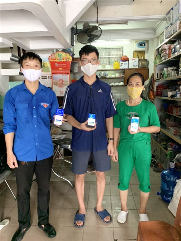 Thanh niên tình nguyện phường Nam Khê đến nhà, hướng dẫn người dân cài đặt, sử dụng ứng dụng Bluezone.