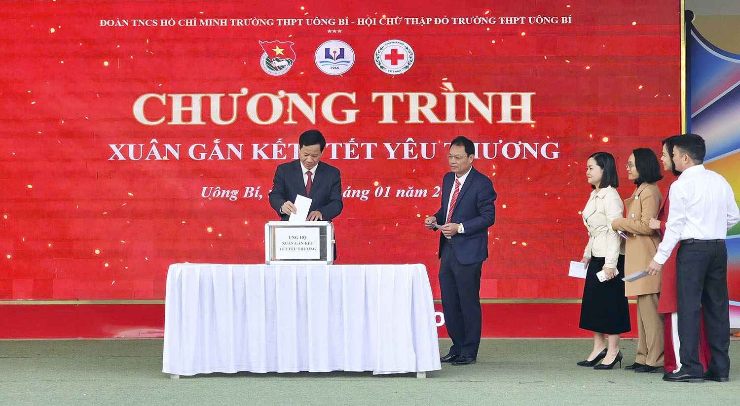 Tại chương trình, Đoàn TNCS Hồ Chí Minh Trường THPT Uông Bí phối hợp cùng Hội Chữ thập đỏ nhà trường đã phát động chương trình "Xuân gắn kết - Tết yêu thương", nhằm động viên các em học sinh có hoàn cảnh khó khăn của nhà trường.