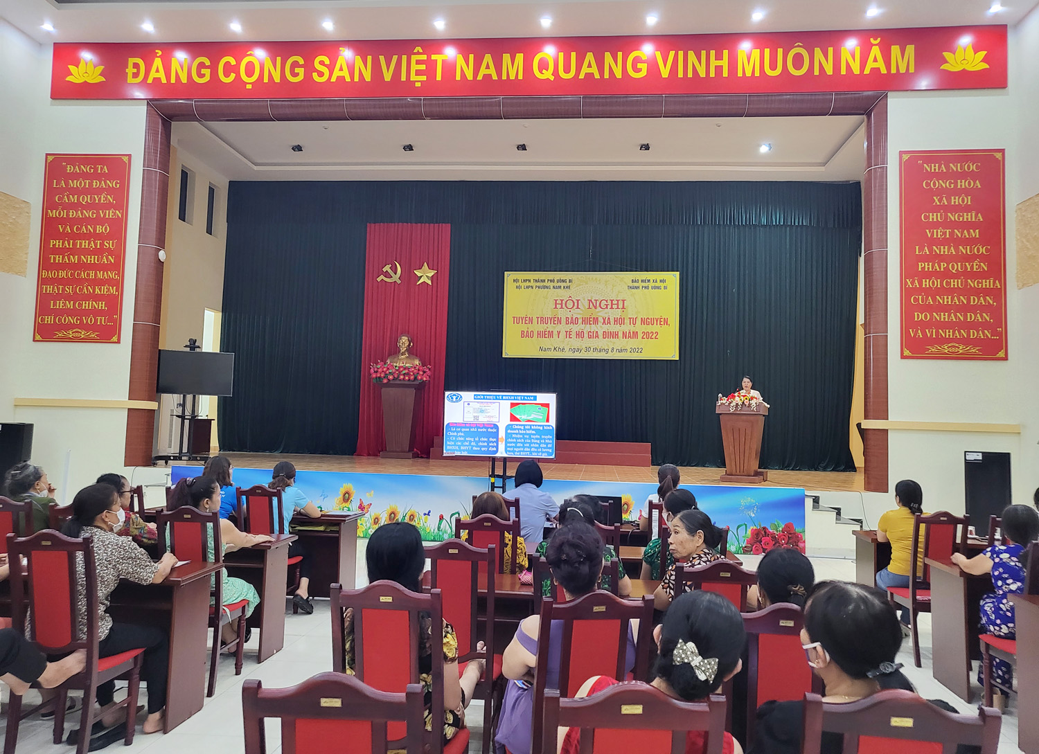 Tuyên truyền chính sách bảo hiểm xã hội tự nguyện, bảo hiểm y tế hộ gia đình cho hội viên phụ nữ phường Nam Khê