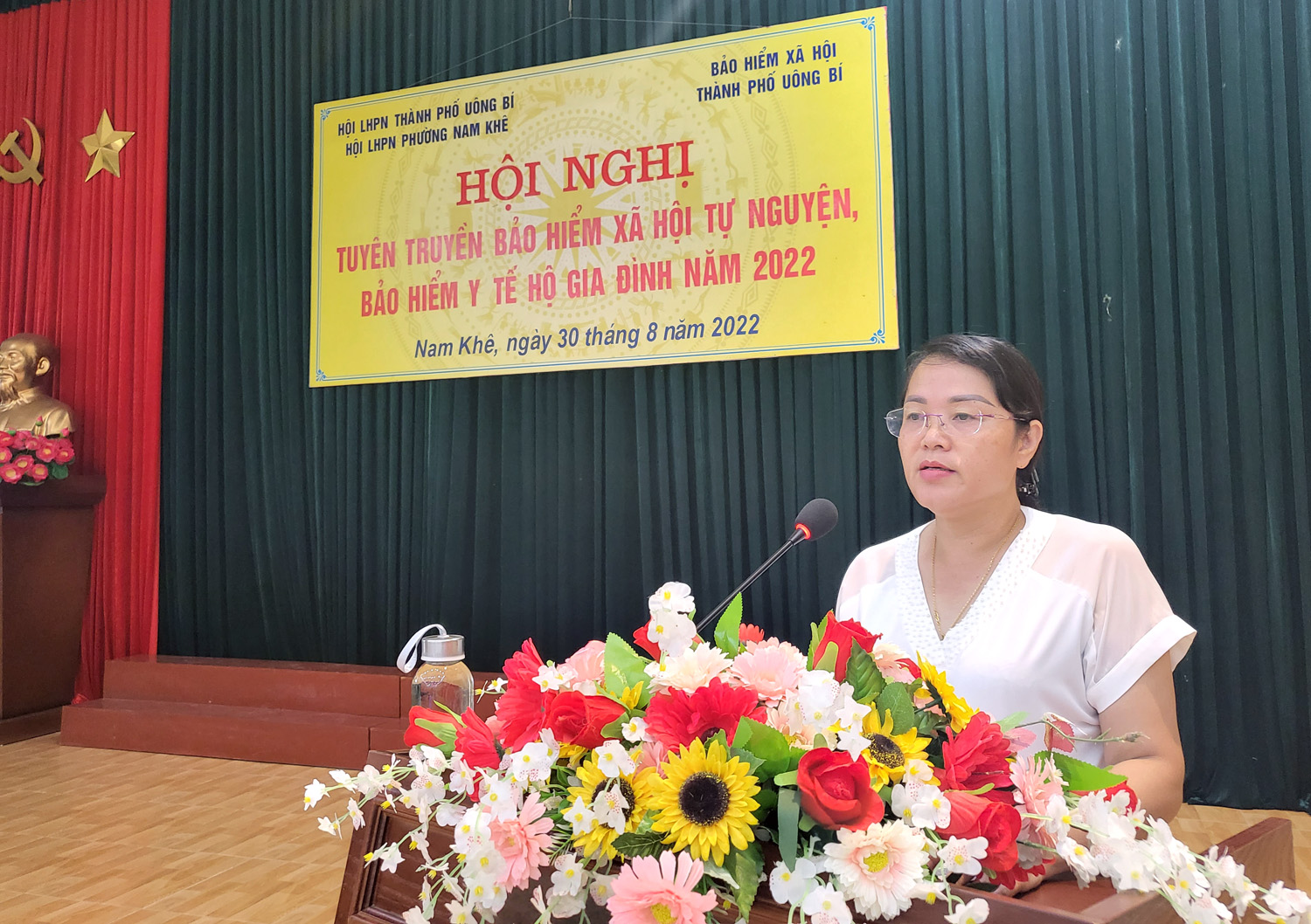 Tối 30/8, cơ quan BHXH thành phố Uông Bí phối hợp với Bưu điện và Hội LHPN thành phố tổ chức Hội nghị tuyên truyền chính sách BHXH tự nguyện, BHYT hộ gia đình năm 2022 cho hội viên phụ nữ phường Nam Khê.