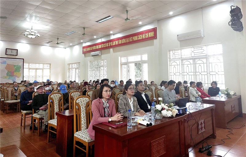 Nhân dân địa phương cùng tìm hiểu, nghiên cứu về chính sách BHXH, BHYT hộ gia đình tại hội nghị.