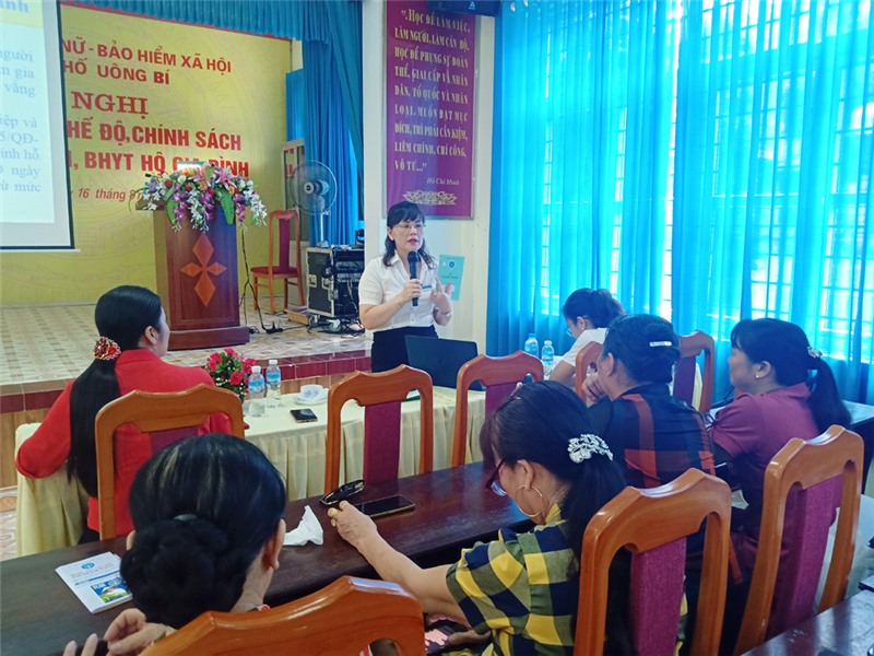 Tuyên truyền chế độ, chính sách BHXH tự nguyện, BHYT hộ gia đình nhằm giúp cán bộ, hội viên phụ nữ và người dân hiểu được sự ưu việt của chính sách BHXH, BHYT trong việc chăm lo sức khoẻ và đảm bảo an sinh xã hội. Từ đó tích cực tham gia góp phần thúc đẩy hoàn thành lộ trình bao phủ BHYT trên địa bàn thành phố theo kế hoạch.