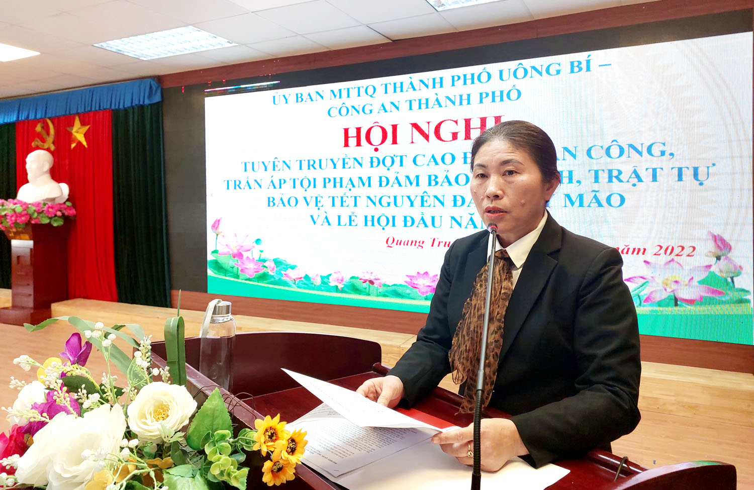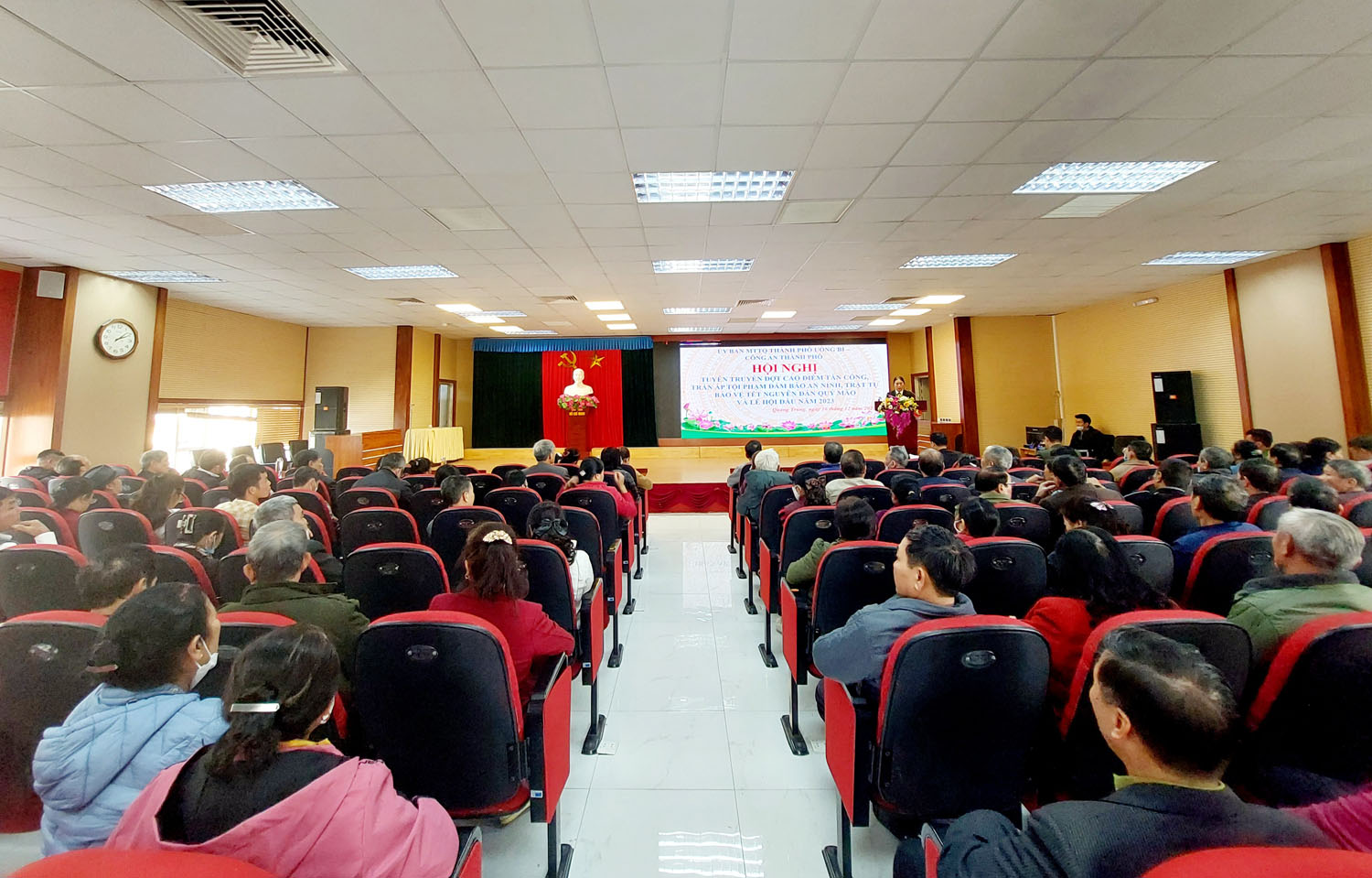 Tại hội nghị, các đại biểu đã nghe cán bộ Công an thành phố Uông Bí trực tiếp tuyên truyền về các biện pháp phòng ngừa trộm cắp tài sản; các nội dung liên quan đến giao nộp vũ khí, vật liệu nổ, công cụ hỗ trợ ở khu dân cư; Luật an ninh mạng và các hình thức lừa đảo qua mạng.