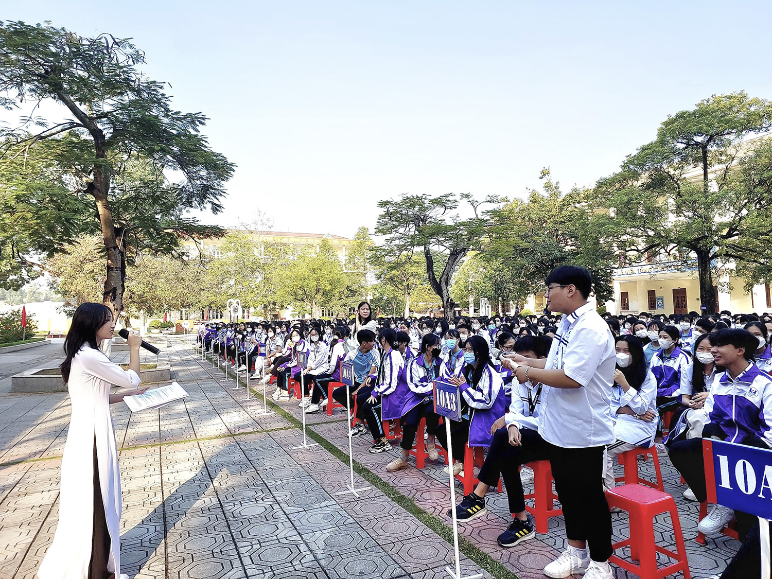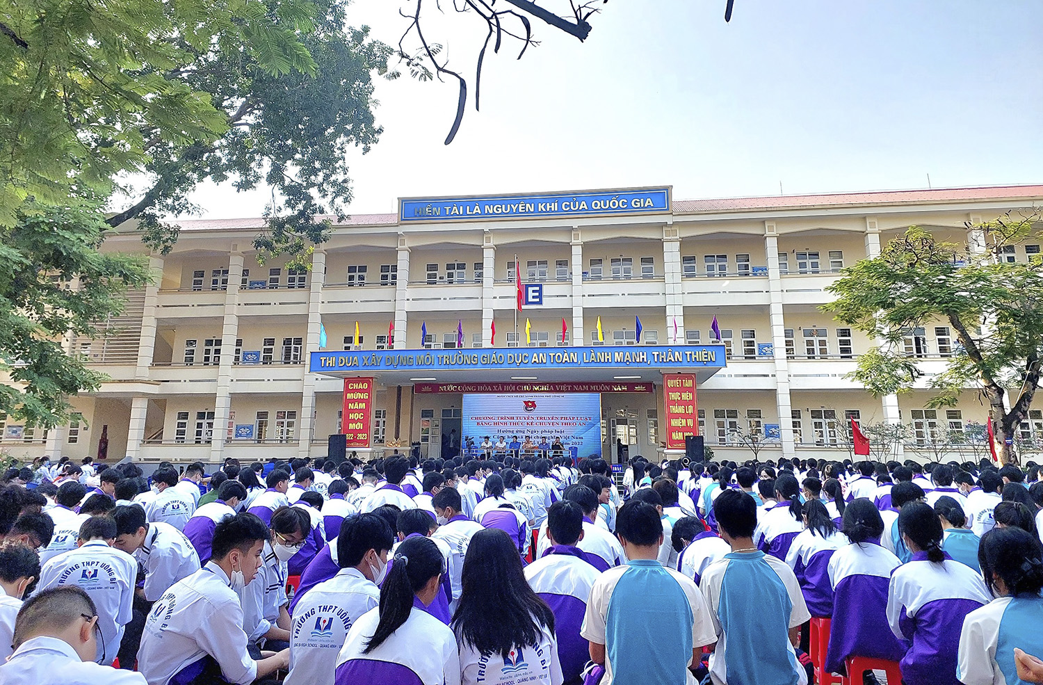 Quang cảnh chương trình tuyên tuyền pháp luật tại Trường THPT Uông Bí.