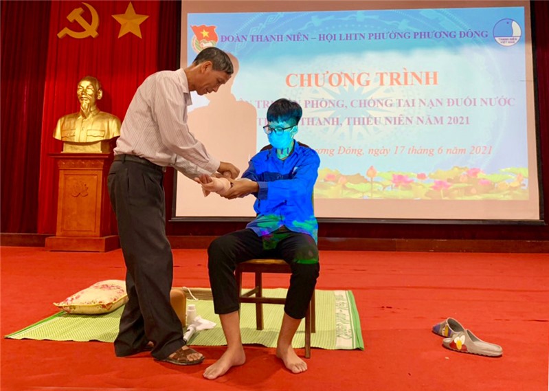 Trong phần tuyên truyền phòng chống đuối nước và tai nạn thương tích, các ĐVTN đã được hướng dẫn các kỹ năng phòng tránh đuối nước, kỹ năng an toàn trong môi trường nước và khi gặp người bị nạn; giới thiệu và thực hành các nội dung phòng tránh tai nạn thương tích như đuối nước, điện giật, cháy nổ, ngã, bỏng...vv