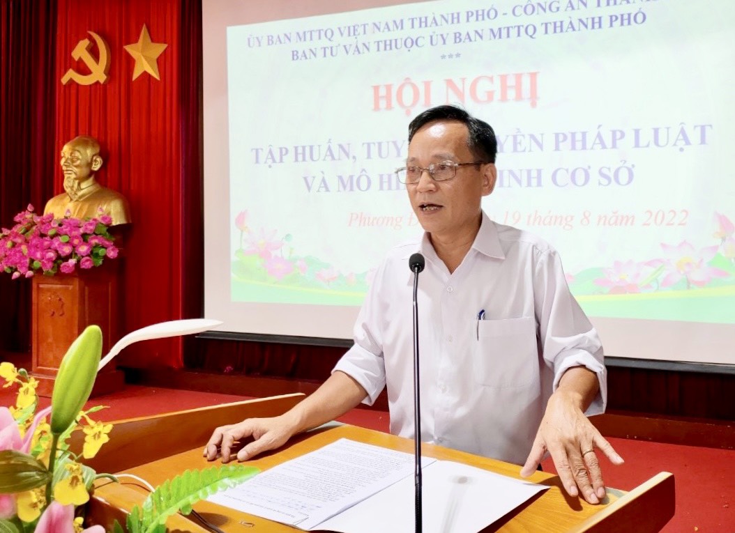 Thành viên Ban Tư vấn của Ủy ban MTTQ thành phố tuyên truyền, phổ biến về công tác tôn giáo.