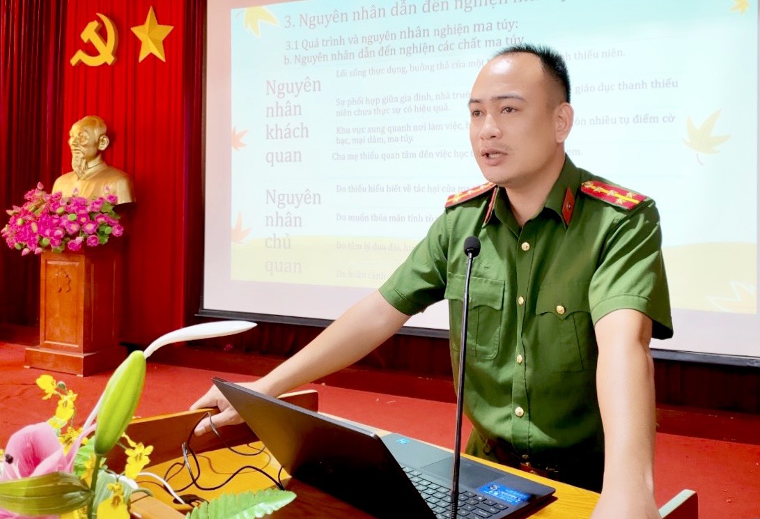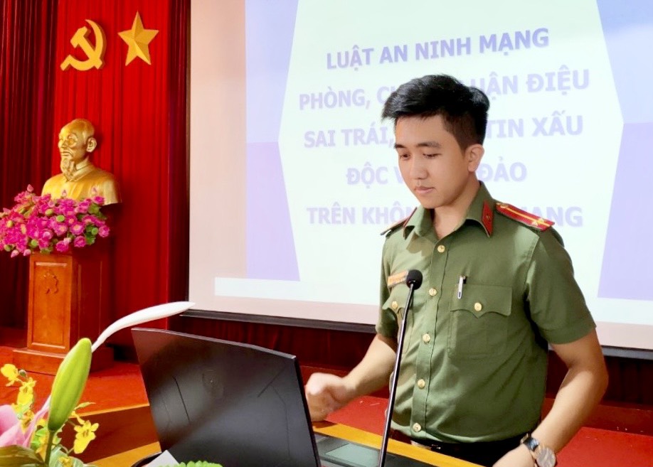 Cán bộ Công an thành phố tuyên truyền, phổ biến các nội dung tại hội nghị.