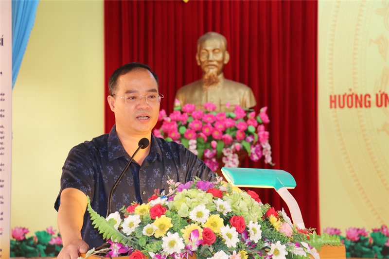 Đồng chí Bùi Văn Thành, Trưởng phòng TN-MT thành phố giới thiệu những nội dung cơ bản của Luật Đất đai 2013.