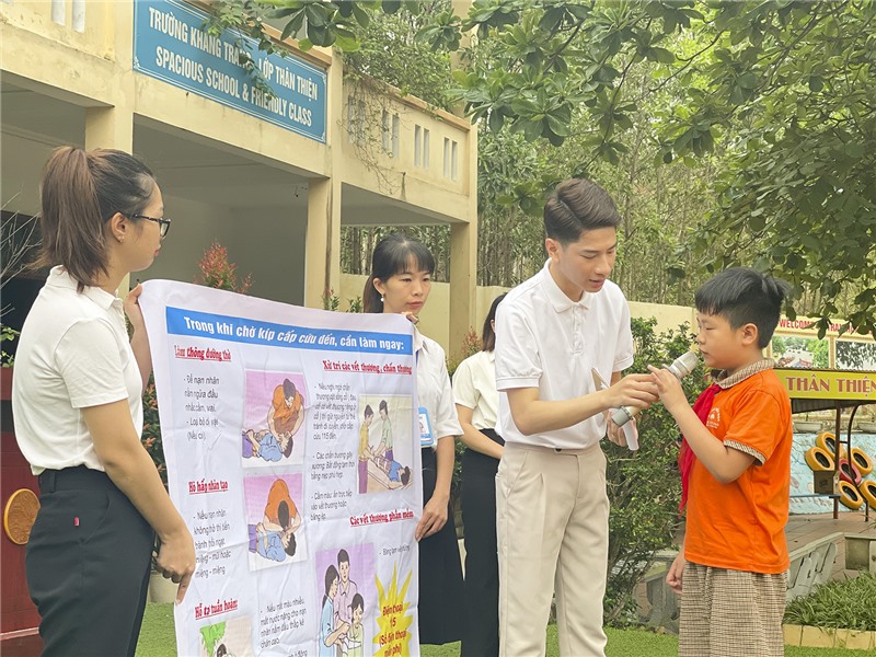 Trong chương trình, các em học sinh đã được tuyên truyền nâng cao nhận thức về kỹ năng phòng, chống đuối nước, phòng tránh tai nạn thương tích, ATGT. Ngoài ra, các em còn được giao lưu trả lời các câu hỏi tình huống về những tai nạn thương tích thường gặp, những nguyên nhân gây ra đuối nước; cách phòng tránh và cách xử lý khi gặp tai nạn đuối nước, kỹ năng an toàn khi tham gia tắm, bơi, hoạt động trong môi trường nước; hướng dẫn sử dụng áo phao, phao bơi đúng cách; kiến thức, kỹ năng cơ bản khi tham gia giao thông …