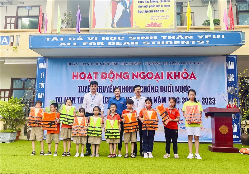 Đoàn phường Thanh Sơn tặng áo phao cho học sinh Trường TH Trần Hưng Đạo.