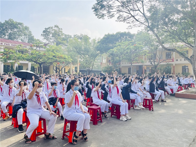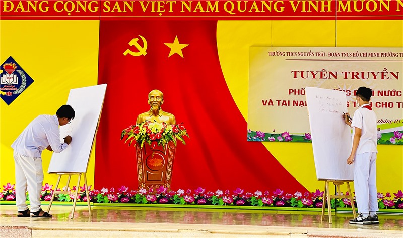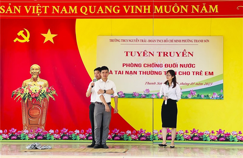 Nhân kỷ niệm 82 năm Ngày thành lập Đội TNTP Hồ Chí Minh 15/5 (1941-2023), sáng ngày 15/5, Đoàn phường Thanh Sơn, Trường THCS Nguyễn Trãi phối hợp tổ chức chương trình tuyên truyền phòng, chống đuối nước, tai nạn thương tích cho học sinh năm học 2022-2023.