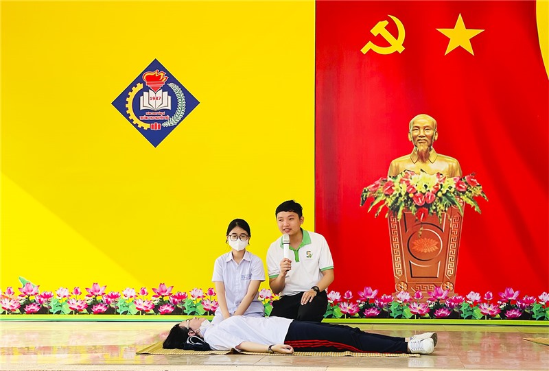 Giáo viên Trung tâm Kỹ năng sống Sepviet tuyên truyền các nội dung của chương trình.